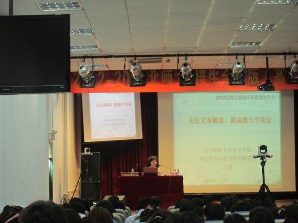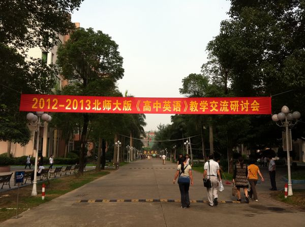 5月23-24日2012-2013北师大版《高中英语》教学交流研讨年会在广州清远召开。我校高二英语备课组长张道仁老师参加了会议。会议由该教材编辑王琦主持,主编王蔷教授作了“语篇文本分析”的讲座;该教材的合作伙伴培生中国的Lilian Downey 教授作了“Teaching Reading Skills and Strategies with Senior High English”的讲座。会议还组织参会教师和教研员观摩了来自清远清城中学的青年教师戴功鹏上的一节高二英语教学研讨课,北师大马欣教授作了点评,与会教师进行了讨论交流。来自河北、安徽、福建和广东等该教材实验区的四位教研员和教师代表在会上作了教材使用情况发言。会议最后还进行了教学设计、录像课评比颁奖及交流活动。会议取得了圆满成功,与会教研员和教师都觉得受益匪浅,收获颇丰。
