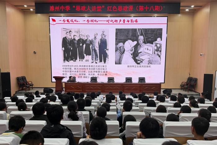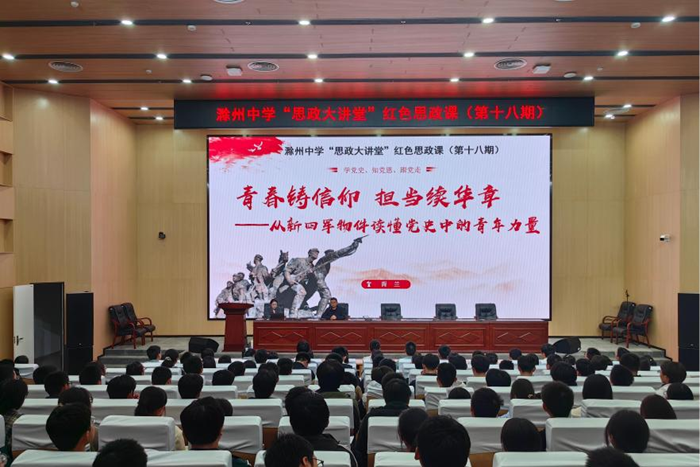 2025年10月29日下午,一场题为《青春铸信仰 担当续华章》的讲座在滁州中学综合楼一楼报告厅精彩开讲。此次讲座由我校高三历史教研组的胥兰老师主讲。这并非一节传统意义上的历史课,它没有枯燥的年表与说教,而是通过一封泛黄的家书、一双破旧的草鞋、一条褪色的皮带和一台沉默的发报机,带领同学们进行了一场穿越时空的对话,真切触摸了那段烽火岁月中跳动的青春脉搏。
