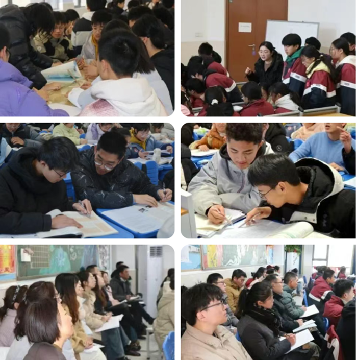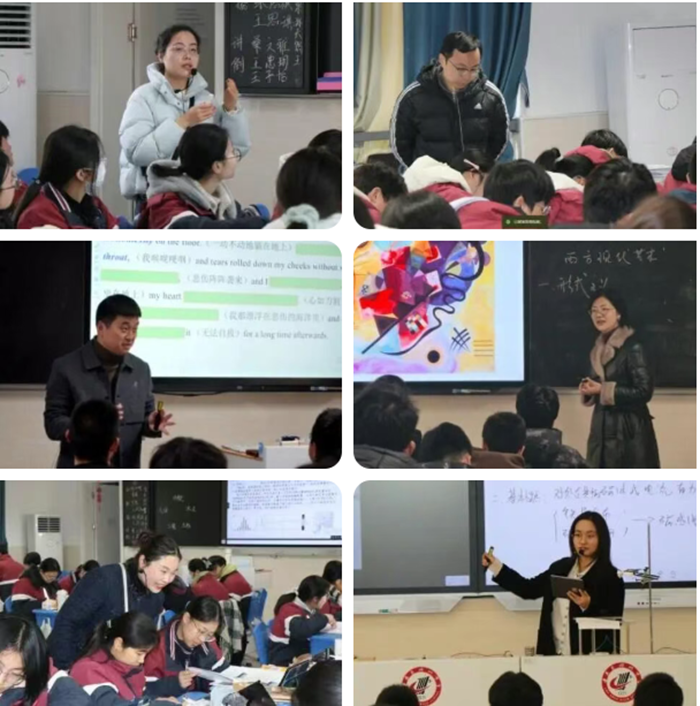 活动当天,高一至高三三个年级同步开放课堂,语文、数学、英语、物理、化学、生物、政治、历史、地理以及音体美、通用技术等学科依次呈现,“同课异构”与“高效课堂”两大板块并行展开。在“同课异构”环节,我校教师与省内外兄弟学校的教师们同题切磋、各展其长,课题相同,取径不一,不同课堂之间的对照与回望,使许多原本习以为常的教学选择被重新看见,也让更多可能的路径逐渐浮现;“高效课堂”则主要由我校各学科骨干教师执教,立足常态课堂,更像一次关于“如何把课堂真正还给学生”的集体回答,从基础课到复习课,从概念建构到问题解决,从读写融合到情境迁移,集中呈现了我校近年来在课堂提质与教学优化方面的实践探索。