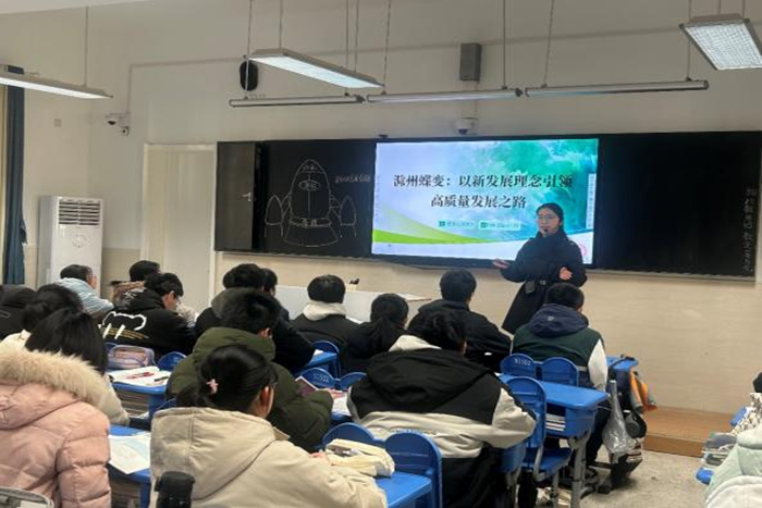 滁州中学刘梦巧老师本节课以“滁州蝶变:以新发展理念引领高质量发展之路”为总议题,立足滁州十年发展实践,通过视频、图片展、调研发布会等本土化情境,串联“为何转向—路在何方—何为担当”三大议题。以学生小组调研、创意展示、方案设计为主线,融合理论知识与家乡发展实际,引导学生探寻高质量发展密码,树立青年担当意识,提升政治认同与公共参与素养。
