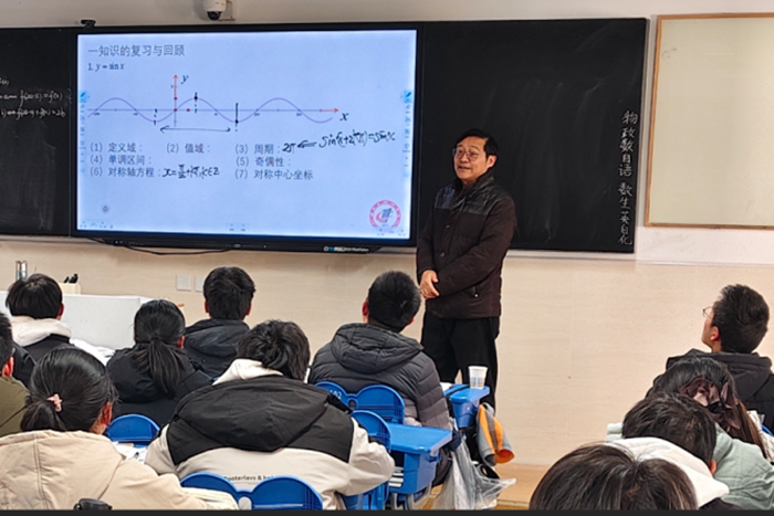 傅毓涛老师与学生一道回顾了三角函数的图像与性质,在整个教学过程中,注重对数学模型的应用,启发学生从多角度探索问题的求解路径,关注学生的逻辑思维能力的培养。