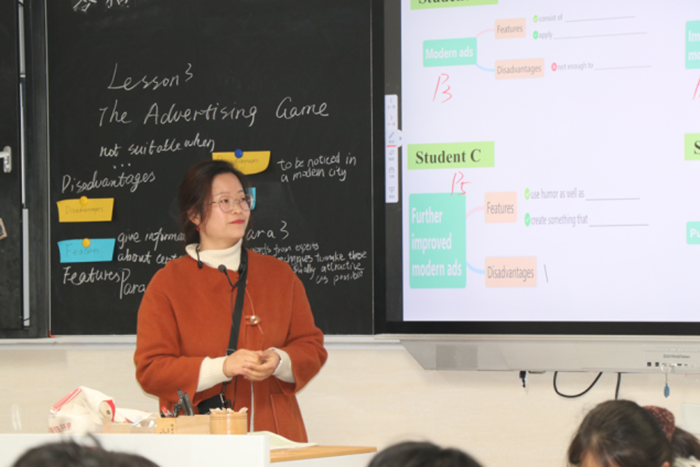 王璇老师带领学生走进《The Advertising Game》英语课堂。课堂以猜广告图片导入,围绕经典广告、现代广告及公益广告的类型、发展历程展开教学,通过小组讨论、广告类型判断、创意助农直播等互动活动,让学生沉浸式感受广告魅力,课堂氛围生动高效。课后作业的布置,作为课堂的延申,既巩固了知识,又提升了学生的思辨与表达能力。