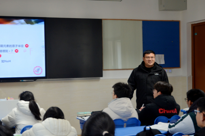 陈贵阳老师围绕“元素性质的周期性变化”,通过同周期、同主族数据对比引导学生归纳原子半径递变规律,并以最高正价与最低负价为线索,结合结构示意图强化“位—构—性”之间的内在联系。