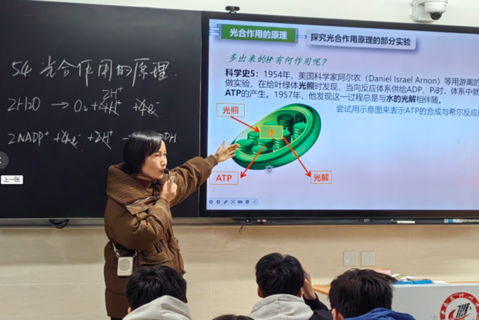 盛夏老师执教的《光合作用的原理》一课目标明确、重点突出,借助AI生成的交互式网页直观呈现希尔反应与阿尔农反应的微观过程,并引导学生参与实验设计,有效降低了理解难度。课堂互动充分、参与度高,核心知识落实扎实,体现了信息技术与学科教学的深度融合。