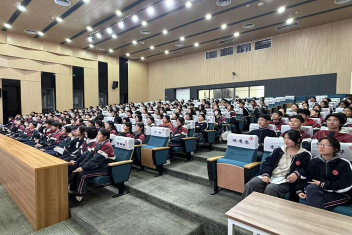 青春答卷:以奋斗扛起复兴重任,用实干书写时代荣光。讲座的“看未来”环节,赵老师以张雪的奋斗故事将现场气氛推向高潮。她通过这一鲜活案例,与同学们分享了奋斗、坚持与担当的时代意义,引导大家清醒认识到:个人理想的实现离不开脚踏实地的拼博,青春价值的书写更应与国家发展、时代进步同频共振。她由此向全体同学发出号召:对国家,要心怀“国之大者”,自觉把个人理想融入民族复兴伟业;对社会,要自觉践行社会主义核心价值观,热心公益事业,奉献社会;对自己,要珍惜韶华,刻苦学习,锤炼过硬本领,努力成长为可堪大用、能担重任的时代新人。